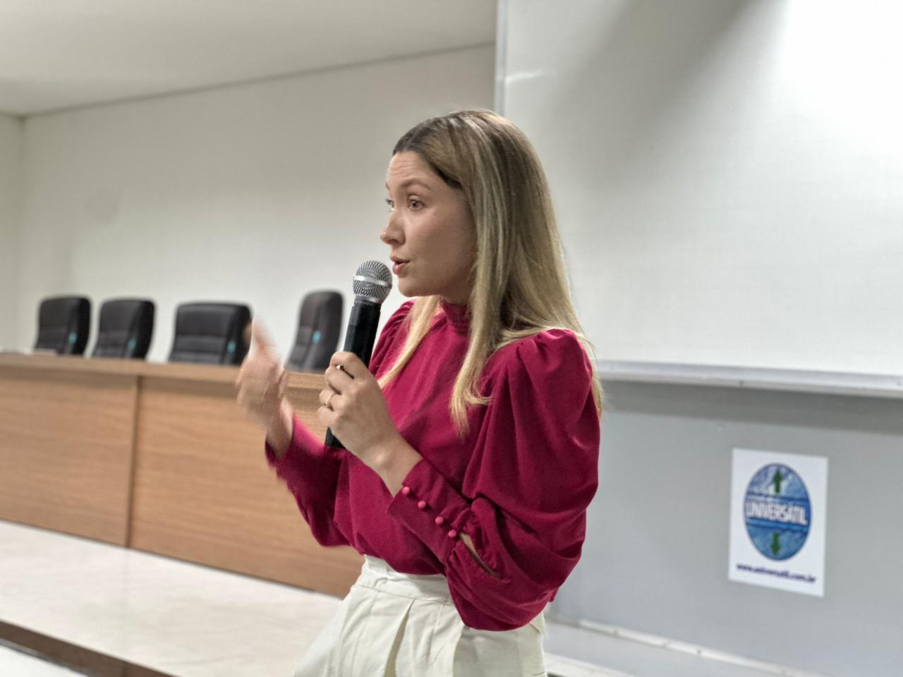 De forma leve e interativa, a palestrante convidou as debutantes a refletirem sobre a importância de cuidar da mente, reconhecer emoções e buscar ajuda quando necessário. Ela explicou os sintomas mais comuns da ansiedade e da depressão, destacando que pedir ajuda não é sinal de fraqueza, mas de coragem e autocuidado.